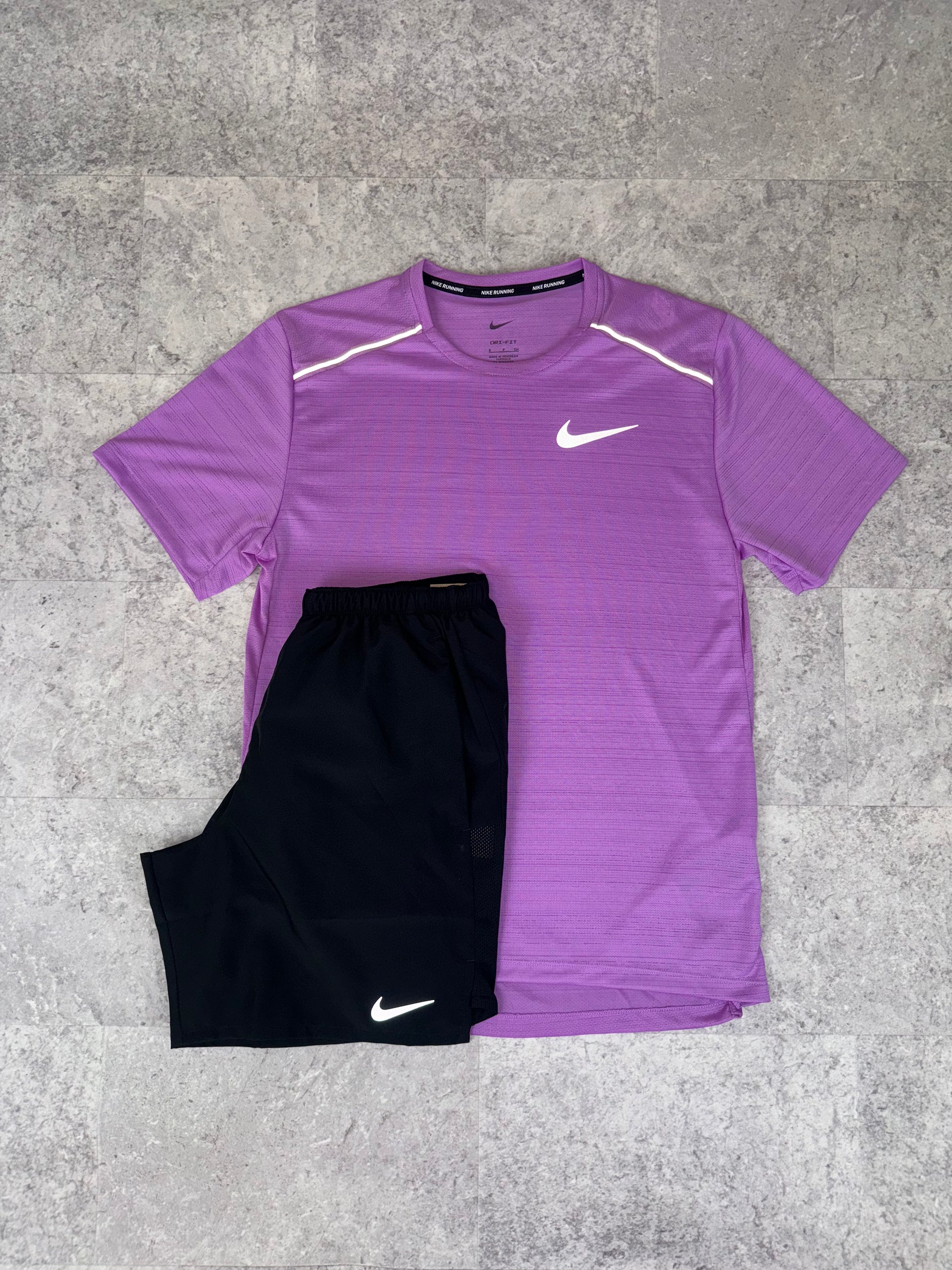 The NIKE MILER SET in Fuschia Pink offers expert runners a perfect balance of comfort and performance. Designed with breathable, lightweight fabric, this set ensures optimal moisture management during intense training sessions. Its sleek fit enhances mobility while maintaining support, making it ideal for serious athletes looking to improve their pace and endurance in style.